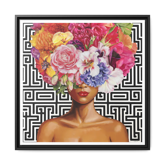 Framed Art Canvas: Vibrant Floral Portrait Decor, Boho Wall Art, Home Gallery, Gift for Her, Inspirational Art, Woman With Flower Head