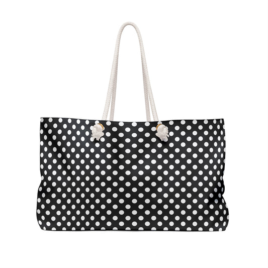 Black and White Polka Dot Weekender Bag - Stylish Travel Tote, Beach, Gym, Overnight, Gift for Her, Large Capacity, Retro Look Bag