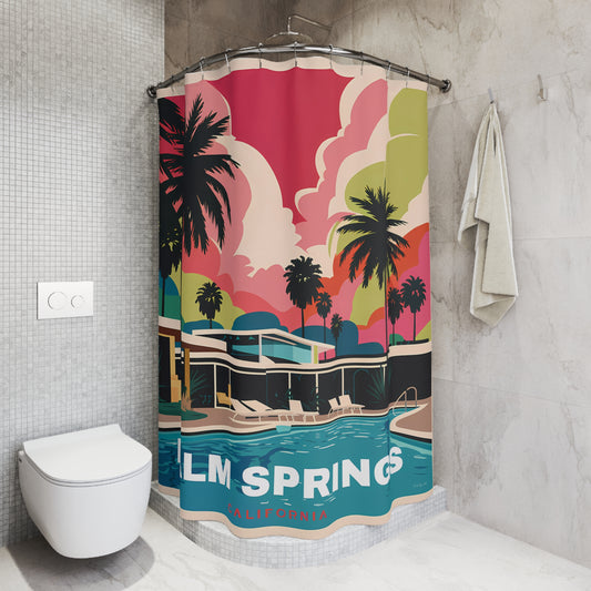 Mid-Century Modern Palm Springs Shower Curtain, Retro Travel Poster Bathroom Decor, Cool Accessories, Vintage Vibes, Home Spa Curtains