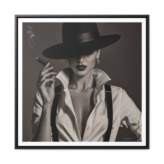 Film Noir Woman Canvas Art, Square Frame, Sexy Black White Femme Fatale Fedora Hat, Wall Hanging Poster Print, Home Decor Gift,