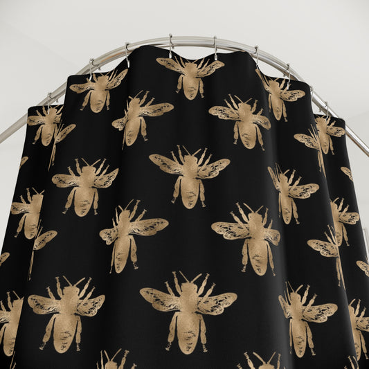 Bee Pattern Shower Curtain, Boho Bathroom Decor, Insect Design, Nature Lover Gift, Home Decor