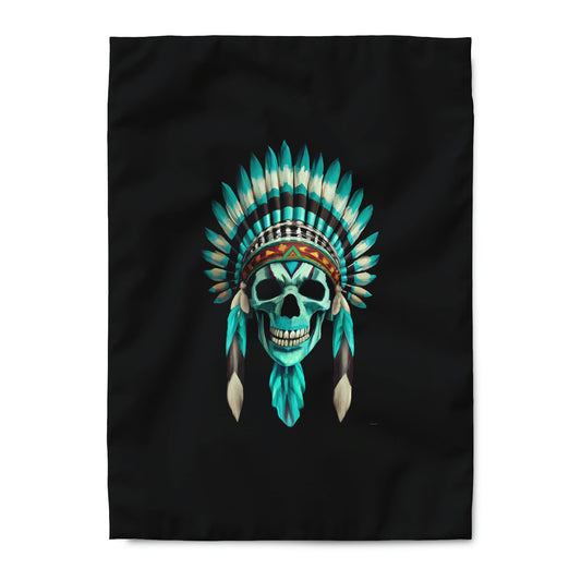 skull, native american headdress, comforter, bedroom decor, bedding, twin XL, queen, king size, modern home decor, gothic, modern bedroom