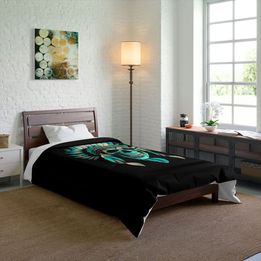 skull, native american headdress, duvet cover, bedding, twin XL, queen, king size, bedroom decor, gothic, turquoise, modern home decor