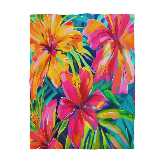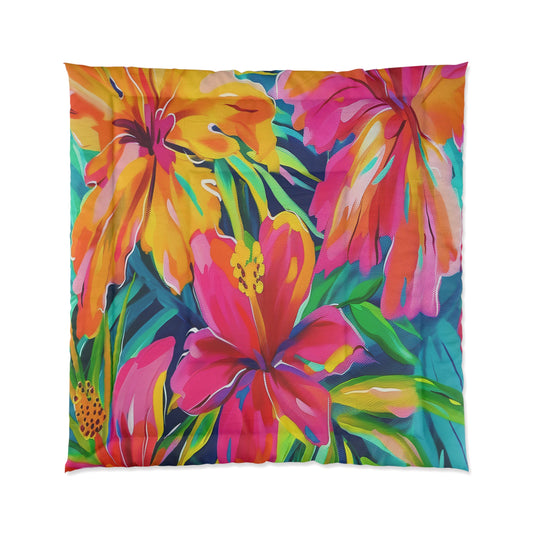 Tropical Floral Comforter - Vibrant Bedding for a Relaxing Bedroom Retreat, Summer Decor, Tropical Vibe, Gift for Nature Lovers, Colorful