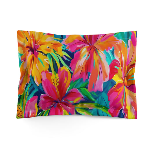 Tropical Floral Microfiber Pillow Sham, Vibrant Pillow Cover for Bedroom, Gift for Her, Summery Home Decor, Tropical Bedding