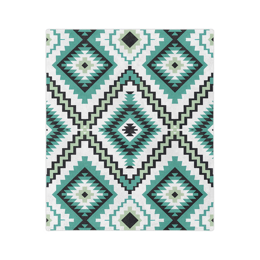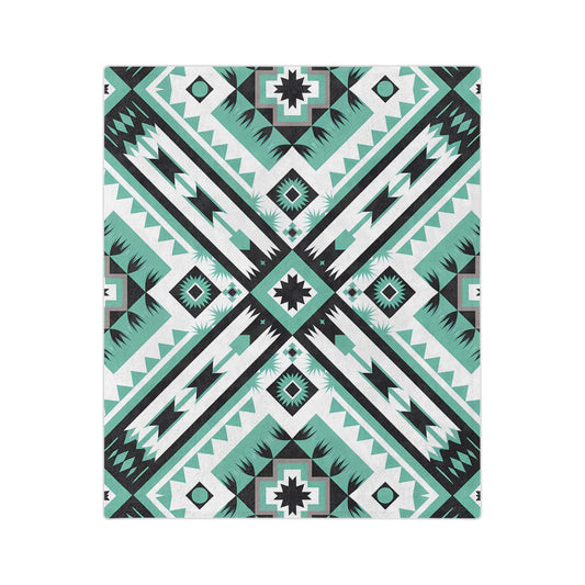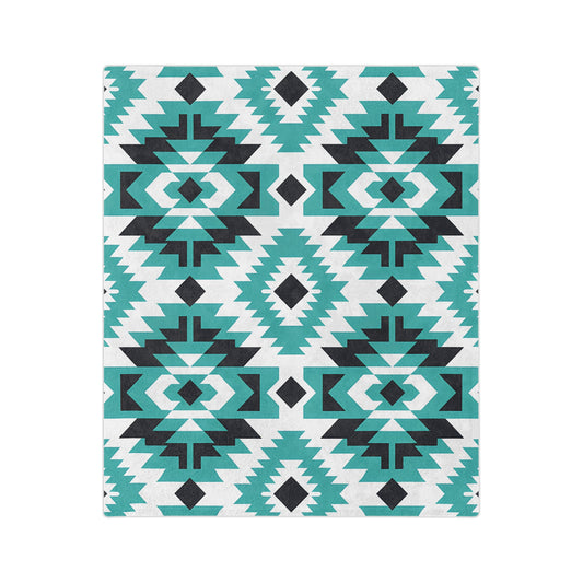 Turquoise Tribal Velveteen Blanket, Cozy Throw for Indoor, Outdoor Use, Perfect Gift for Relaxing & Home Decor, Tribe Pattern