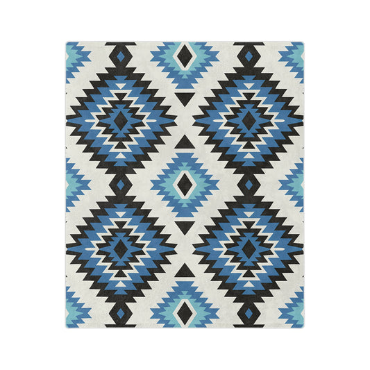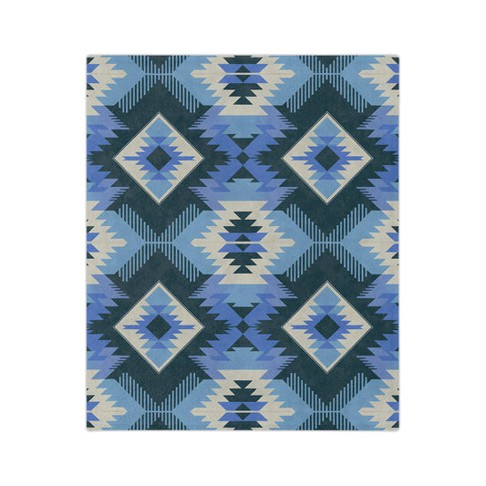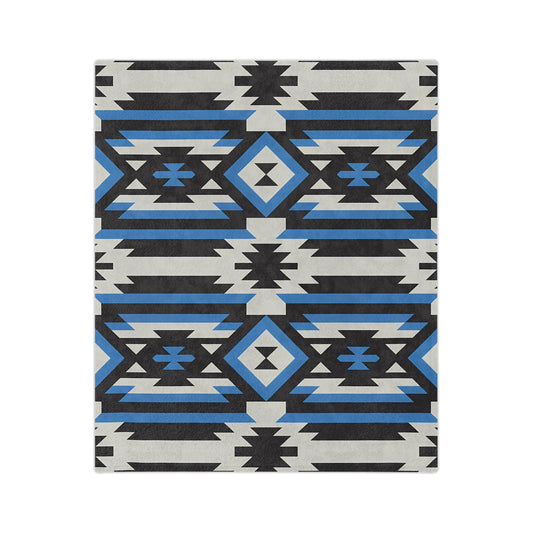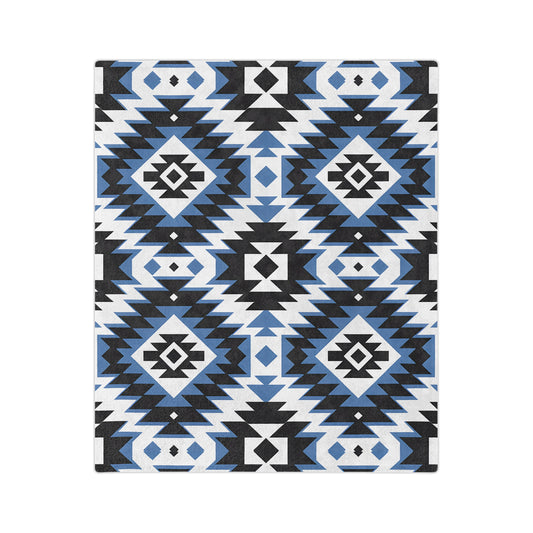 Geometric Blue Pattern Microfiber Blanket | Cozy Throw, Home Decor, Gift for Him/Her, Tribal Design, Indoor/Outdoor Use