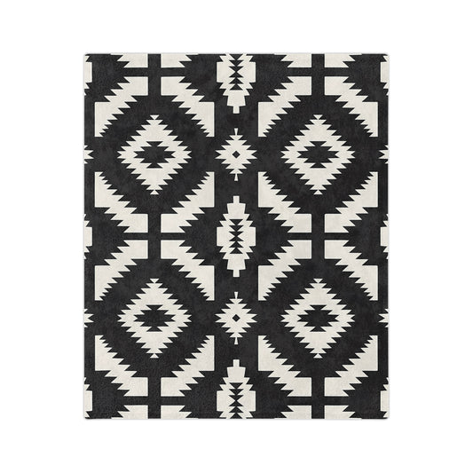 Geometric Pattern Velveteen Blanket, Cozy Microfiber Throw, Modern Home Decor, Rustic Couch Comfort, Black and White Warmth