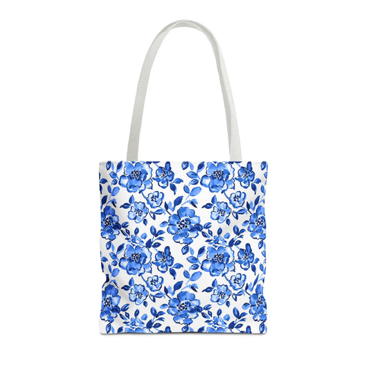 Blue Floral Tote Bag, Reusable Grocery Bag, Beach Bag, Shopping Tote, Gift for Her, Spring/Summer Accessory, Feminine Bag