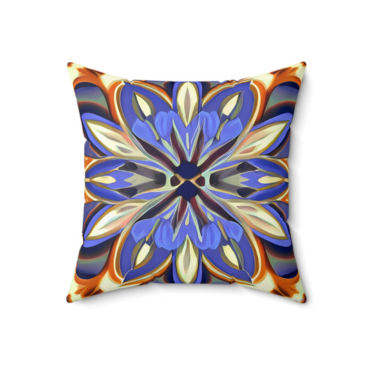 Boho Flower Square Pillow, Iris Purple Brown Cream, Unique Home Decor, Spun Polyester Cushion, Floral Accent Pillow, Floral Home Decor