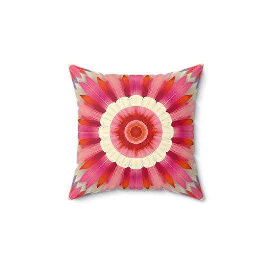Boho Square Pillow, Pink Orange Feminine Home Decor Cushion, Throw Pillow Cover, Bohemian Pillowcase, Sofa Accent Pillow, Gift for Her