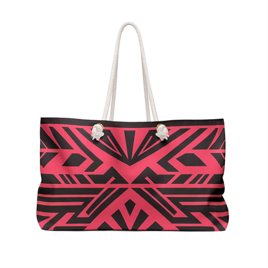 Boho Tribal Oversized Weekender Bag - Black Southwest Design on Pink-Red Background, Travel Accessory