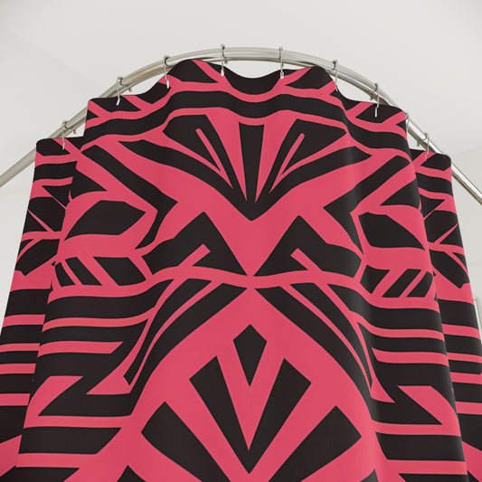 Boho Tribal Black Shower Curtain, Southwest Design on Pink-Red Background Bathroom Decor, Unique Home Accent, Hippie Style Bath Curtain,