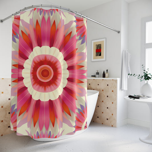 Boho Flower Shower Curtain - Orange, Pink, White Eclectic Bathroom Decor, Floral Bath Curtain, Bohemian Home Accessories, Unique Fabric