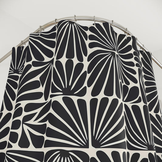 Matisse Style Floral Shower Curtain, Retro Artsy Bathroom Decor, Black and Off-White, Abstract Pattern, Modern Home Design, Unique Gift