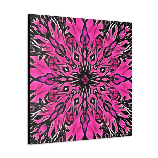 hot pink and black abstract boho flower, wall art dcor, room wall dcor, unique art, contemporary, feminine, boho style decor, modern