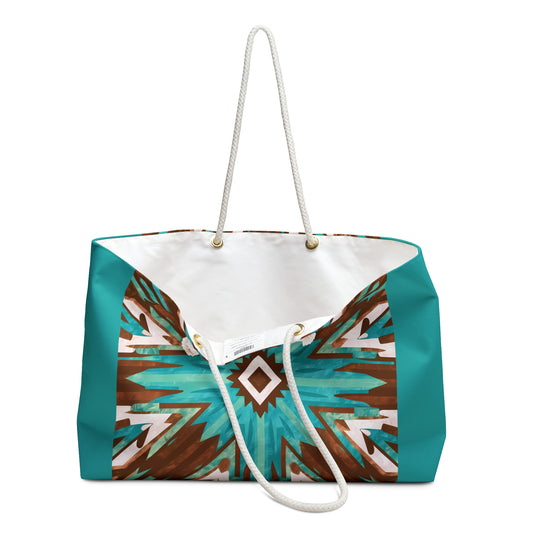 Oversized Tote Bag - Turquoise Brown Boho Southwestern Design