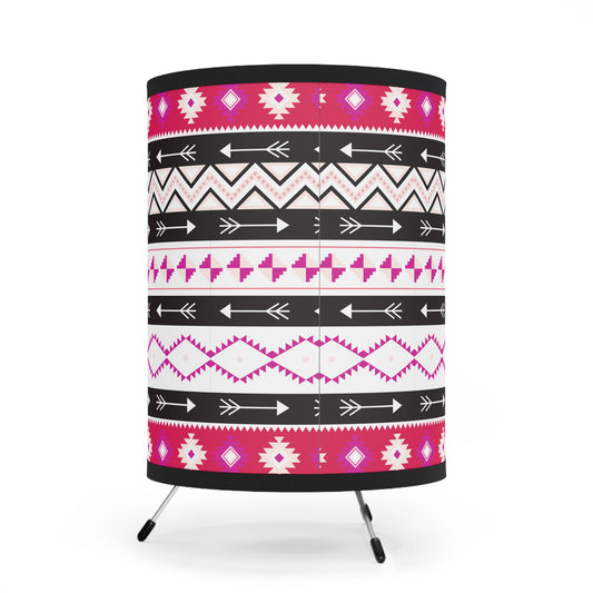 Pink and Black Tribal Print Tripod Lamp - Bohemian Home Decor, Modern Lighting, Unique Gift, Ethnic Style, Living Room Accent