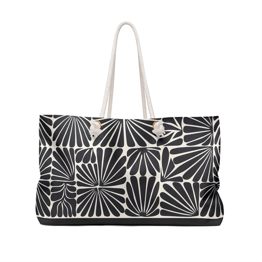 Oversized Weekender Bag - Black and Off-White Matisse Inspired Abstract Flower Design - Boho Chic Retro Accessory