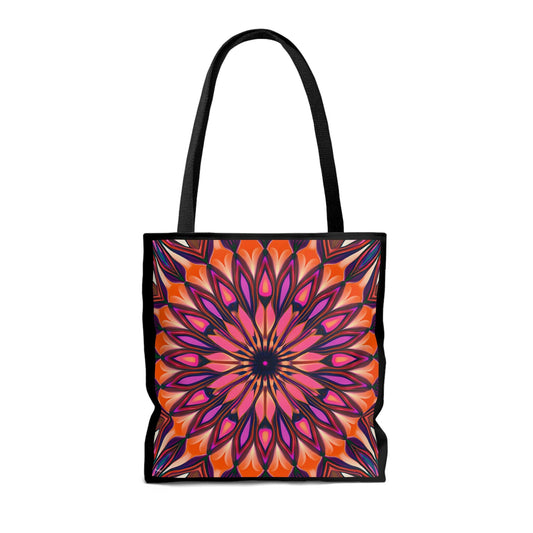 orange and purple abstract sunburst canvas tote bag,