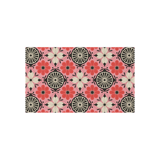 Pink, black and White Colorful Floral Outdoor/Indoor Rug, Garden Decor, Patio Mat, Boho Style Area Carpet, Eco-Friendly Home Accent