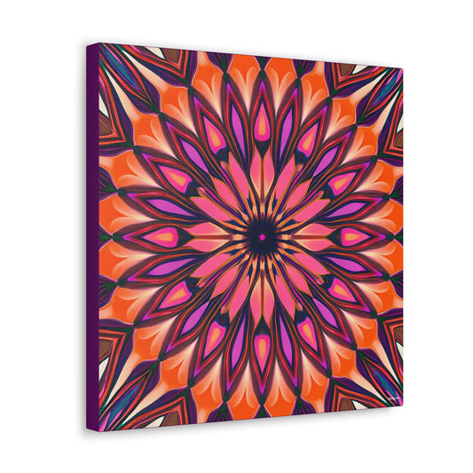 orange and purple abstract sunburst canvas wall art, wall art dcor, room wall dcor, unique art, tribal pattern wall art, boho wall art