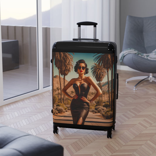 Suitcase, Travel Accessory, Luggage Fashionista, Palm Springs, Retro Style Woman, Glamorous Suitcase, Unique Travel Bag