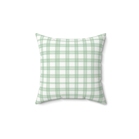 Green Plaid Spun Polyester Pillow, Cozy Decorative Cushion, Farmhouse Style Home Decor, Gift for Homeowners, Holiday Accent