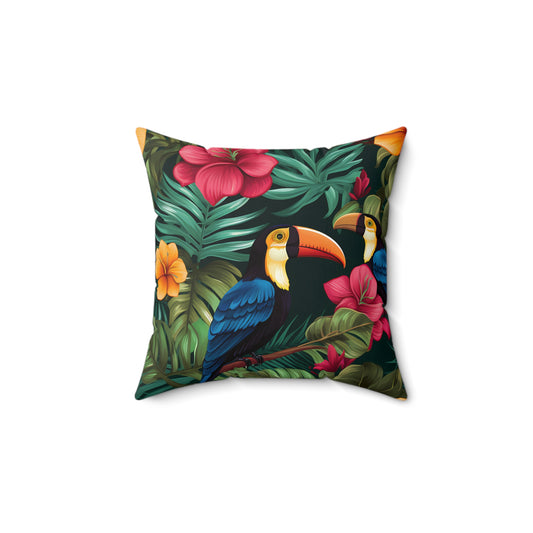 Tropical Toucan Pillow, Colorful Home Decor, Jungle Pillow, Indoor Cushion, Nature-Inspired Gift, Tropical Vibe Decor, Floral Design