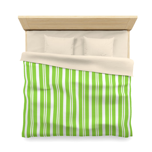 Vibrant Green Striped Microfiber Duvet Cover, Fresh Bedding, Eco-Friendly Comforter, Spring Decor, Bedroom Upgrade