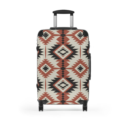 Bohemian Style Suitcase with Geometric Design, Travel Luggage, Unique Gift for Travelers, Vacation Essentials, Patterned Travel Case
