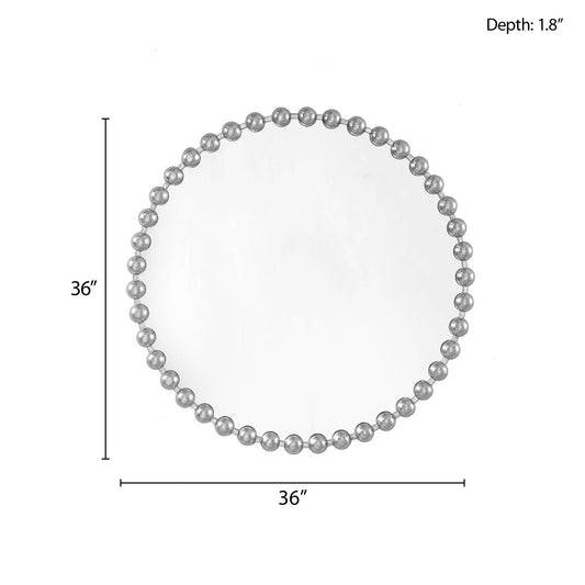 Sold outBeaded Silver Round Wall Mirror 36"D