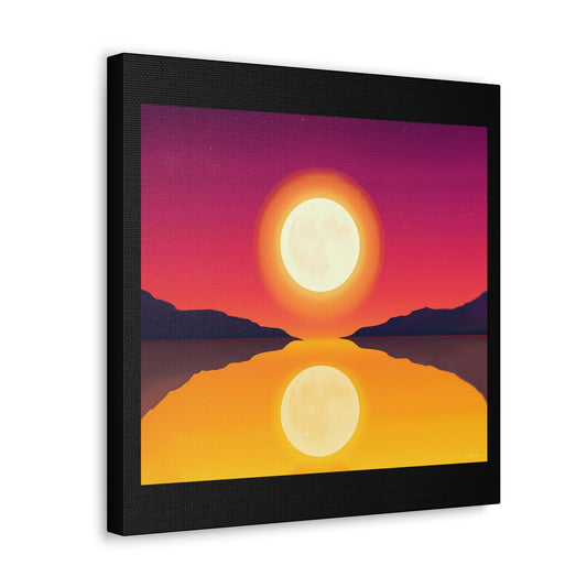 Canvas Wall Art, Moonlight Pink Orange Sky Square Frame Serenity Calmness Decor, Ocean Gallery Wrap, Home Office Decor, Beach House Gift,