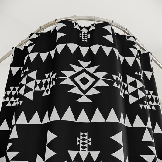 Tribal Boho Southwest Shower Curtain - Black & White Geometric Ethnic Home Decor, Bathroom Accessories, Indie Art Bath Decor,