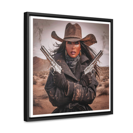Southwestern Outlaw Queen Square Canvas Wall Art, Female Portrait, Desert Home Decor, Tough Woman in the Desert, Gallery Canvas Wraps,