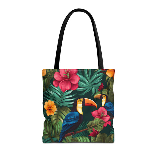 Tropical Paradise Tote Bag - Colorful Floral and Toucan Design - Beach Essentials, Eco-Friendly Shopping, Summer Gift, Vacation Accessory,