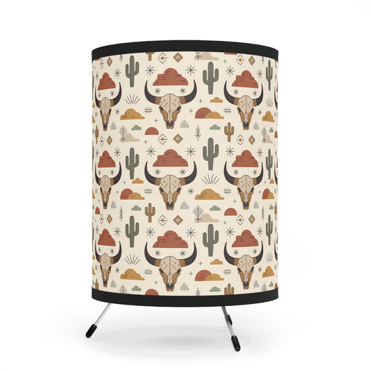 Desert Vibes Tripod Lamp, Boho Home Decor, Southwestern Lighting, Cactus Shade, Rustic Cow Skull Design, Cowboy Decor