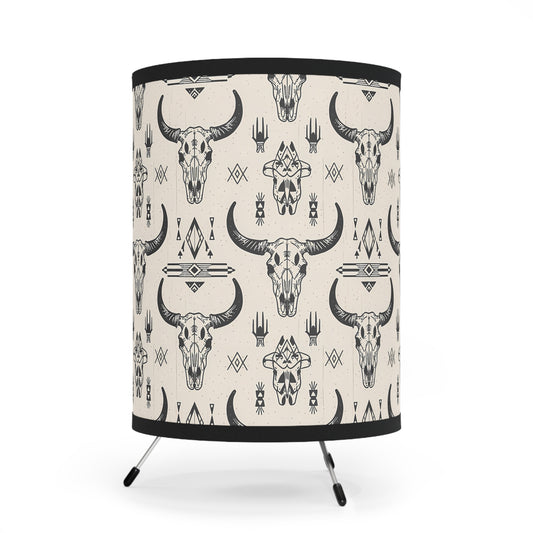 Boho Style Tripod Lamp, Rustic Home Decor, Modern Lighting, Cow Skull Print, Festival Vibes, Unique Gift Idea, Cowboy Decor, Southwestern
