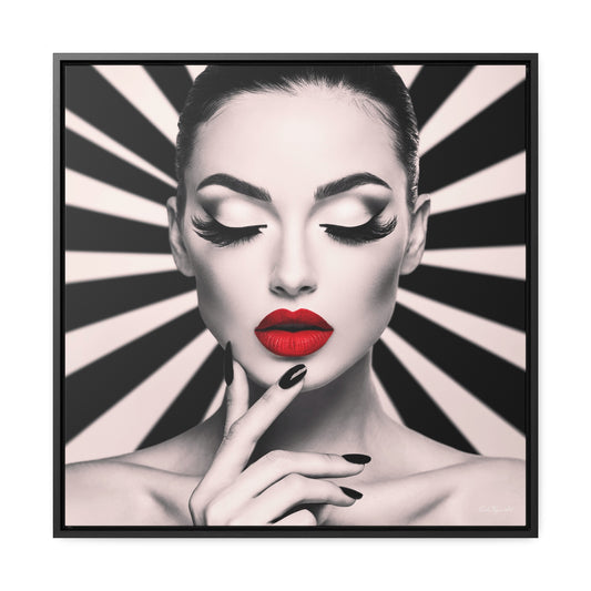 Fashionista Square Frame Canvas Wall Art, Hypnotic Woman Red Lipstick Fine Art Print, Dramatic Glam Decor, Gallery Canvas Wraps, Square