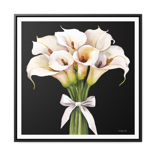 Square Frame Canvas Wall Art - White Calla Lillies Bouquet Painting, Gallery Canvas Wraps, Square Frame, Home Decor, Floral Art, Black