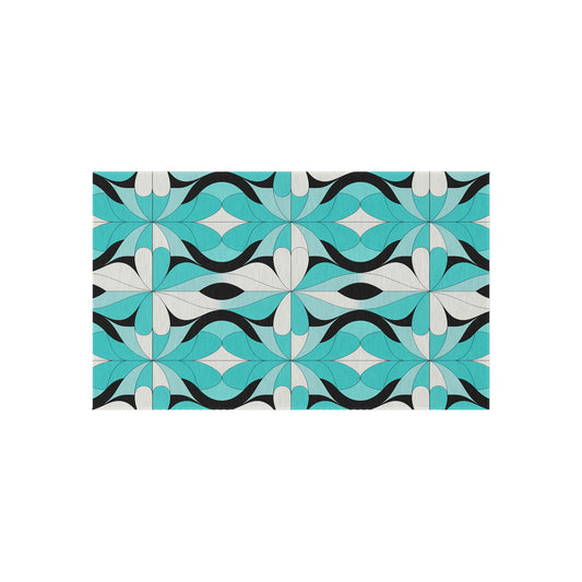 Turquoise, Black and White Stylish Outdoor Rug for Patios, Boho Decor, Area Mat, Deck Accessory, Indoor/Outdoor Use