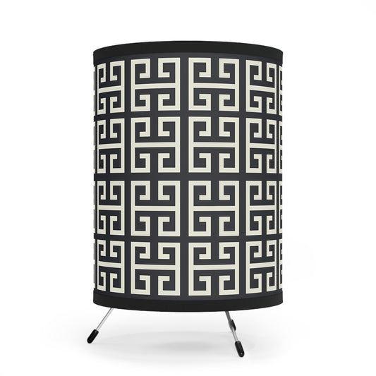 Chic Tripod Lamp with Geometric Printed Shade, Modern Lighting, Home Decor, Contemporary Gift, Accent Lighting, Stylish Interior Design
