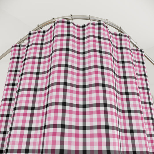 Chic Pink and Black Plaid Shower Curtain, Cozy Bathroom Decor, Farmhouse Style, Gift for Her, Holiday Decor, Cottage Core