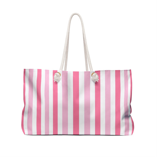 Cheerful Pink Striped Weekender Bag - Stylish Tote for Travel, Beach, Vacation, Gym, Shopping, Feminine Bag, Teen Girl Accessory