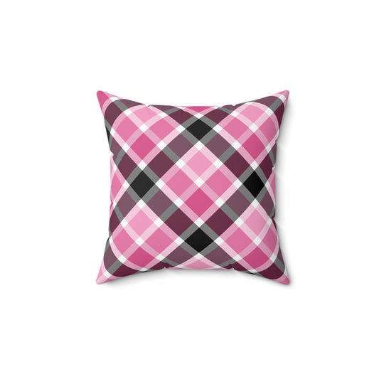 Chic Plaid Square Pillow, Cozy Home Decor, Living Room Accent, Pink Throw Pillow, Gift for Her