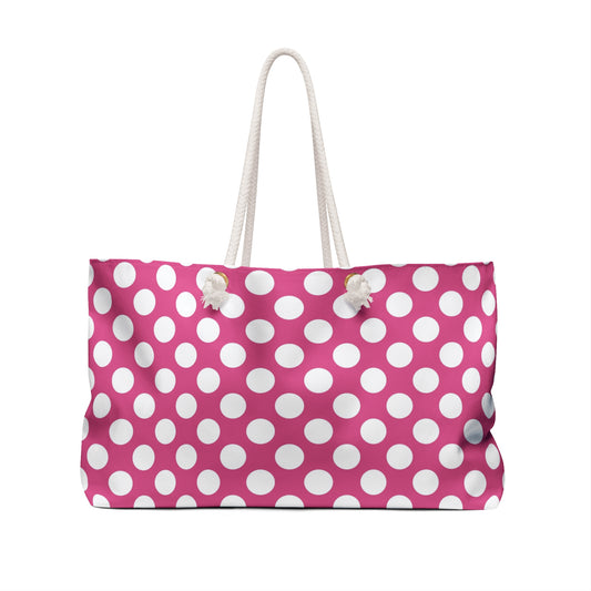 Pink and White Polka Dot Weekender Bag - Perfect for Travel, Beach Days, Gym, Tote, Gift for Her, Summer Vacation, Feminine Bag