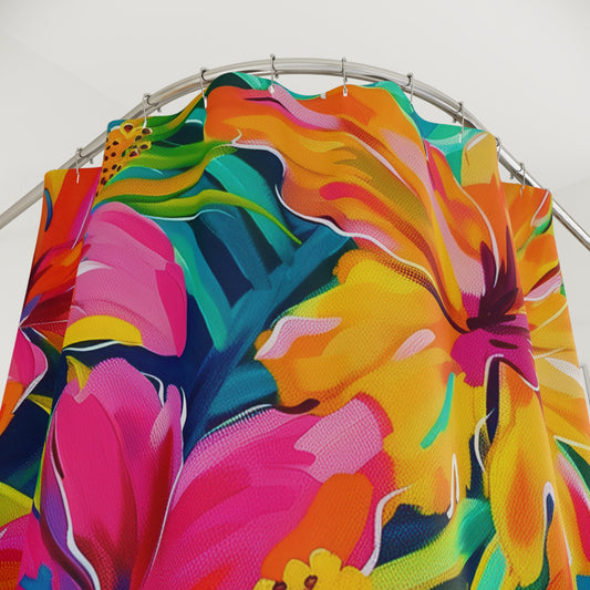 Vibrant Tropical Shower Curtain - Colorful Floral Bathroom Decor, Hibiscus Print, Beach House Essentials, Gift Idea, Summer Vibes