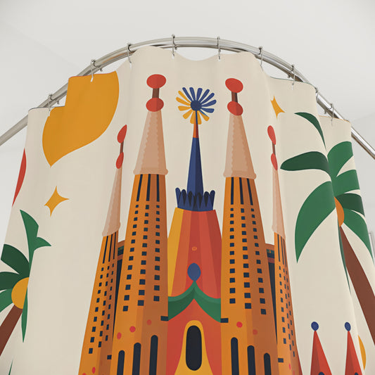 Barcelona Spain Shower Curtain, Colorful Bathroom Decor, Travel Inspired Design, Gifts for Travelers, Unique Home Accessories