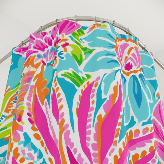 Vibrant Floral Shower Curtain, Tropical Bathroom Decor, Bright Colorful Curtain, Bohemian Style, Gift for Home, Summer Vibe