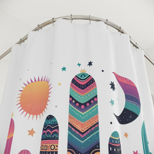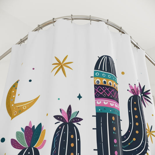 Bohemian Cactus Shower Curtain | Vibrant Bathroom Decor | Southwestern Vibe | Plant Lovers Gift | Dreamy Home Accessory, Bathroom Curtain,